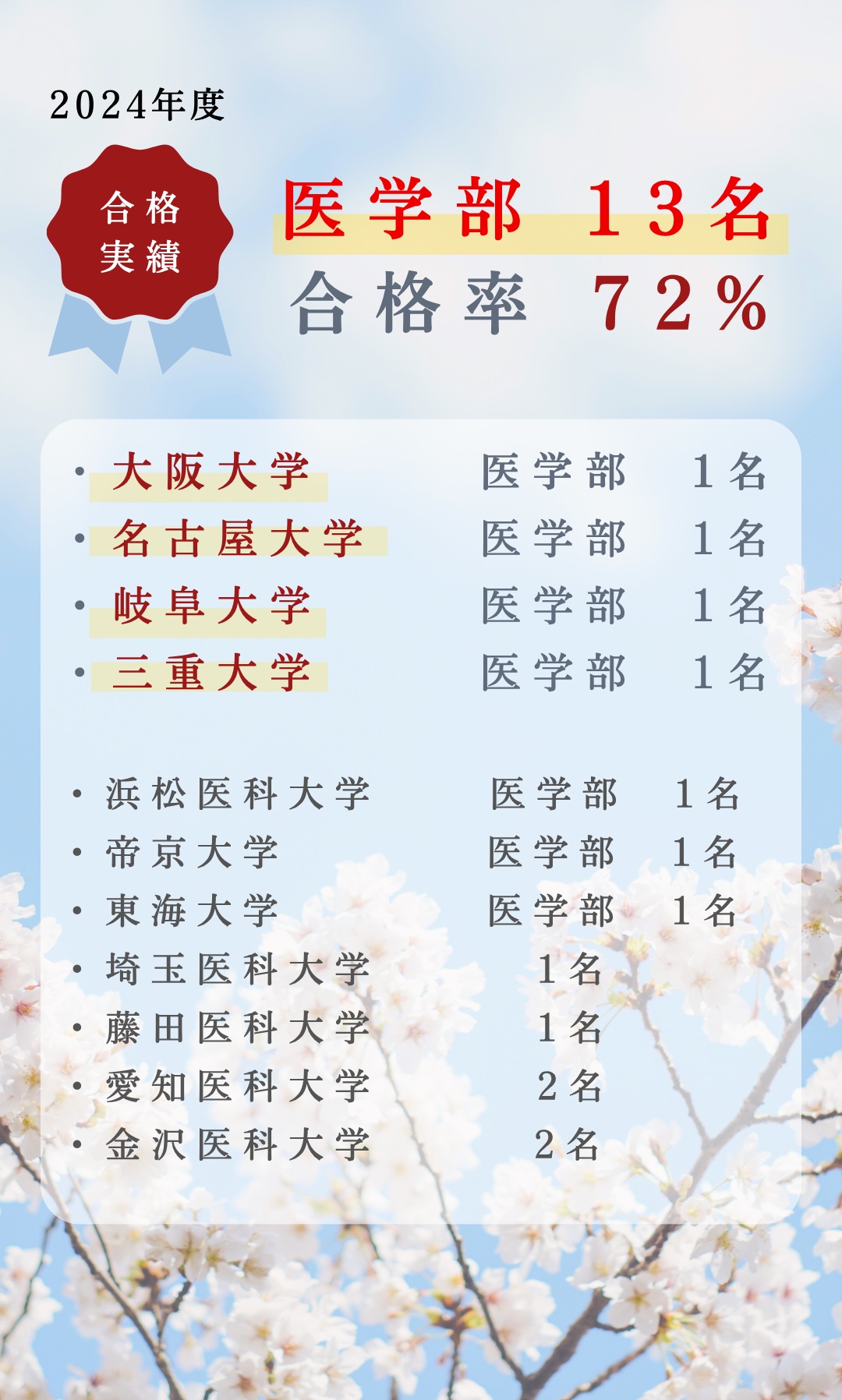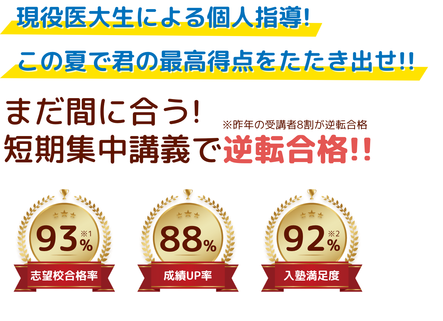 もちろんです。医大生の勉強計画に沿って授業を受けていただければ間に合います。昨年も、入塾時にD判定やE判定の生徒さんが国大や医学部に合格されています。
