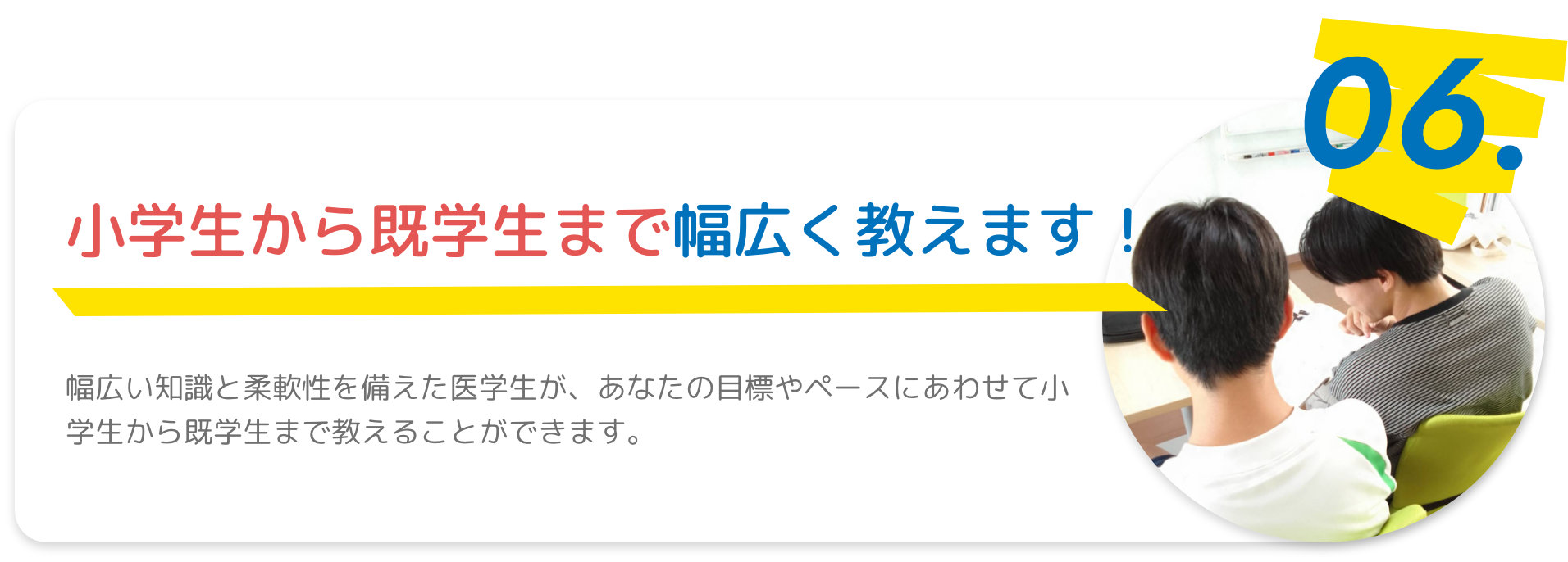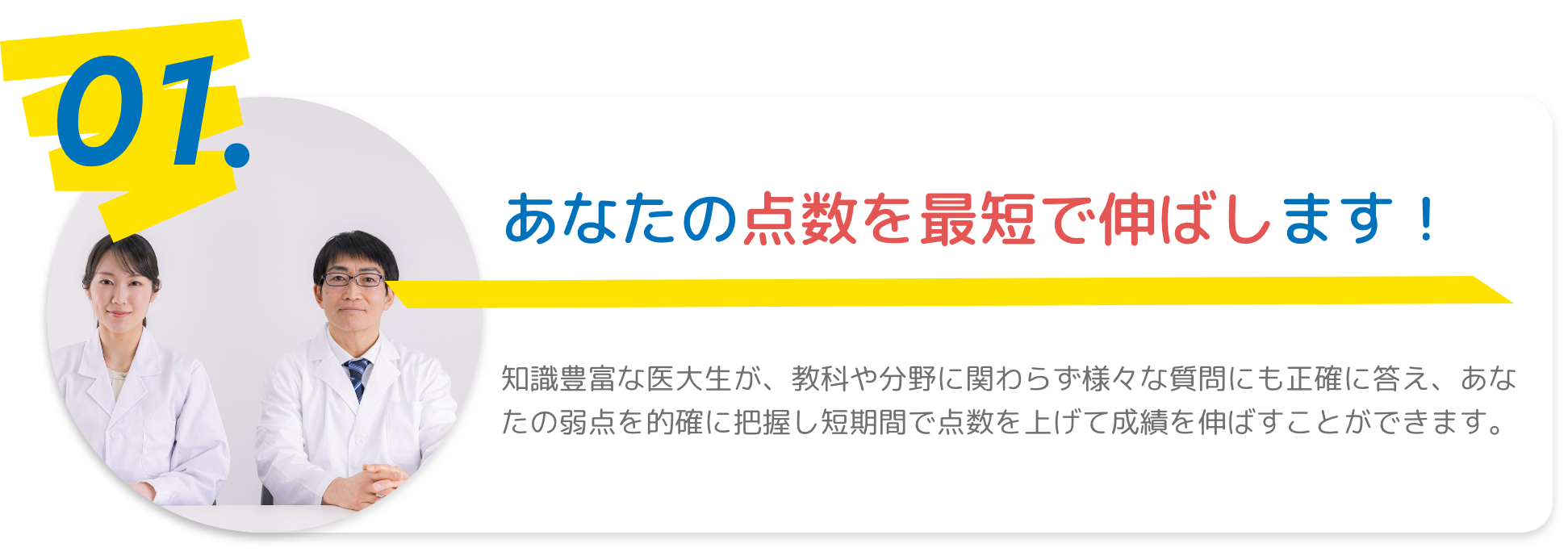 重視される人テスト前にたくさん質問したい、授業でわからなところだけ教えてほしいと思っている人、医大生が正確にその場でわかるまで教え成績を伸ばします。