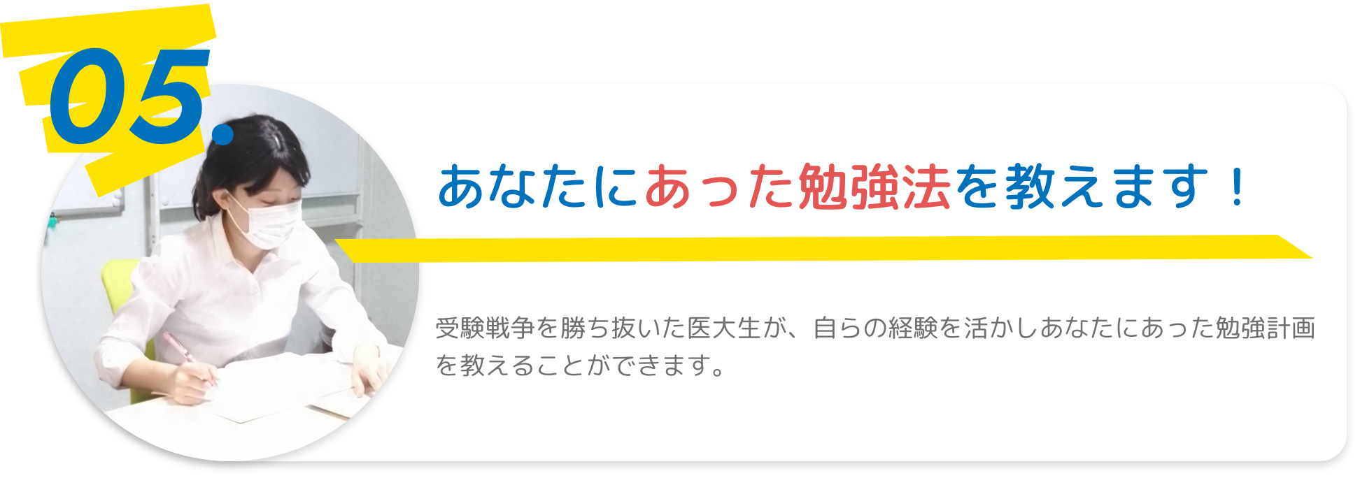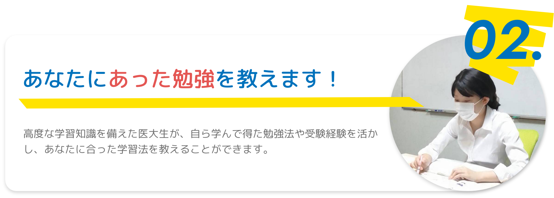 人に気をつかうことなく自分のペースで授業を受けることができ、分からない時はわかるまで医大生に聞くことができます。